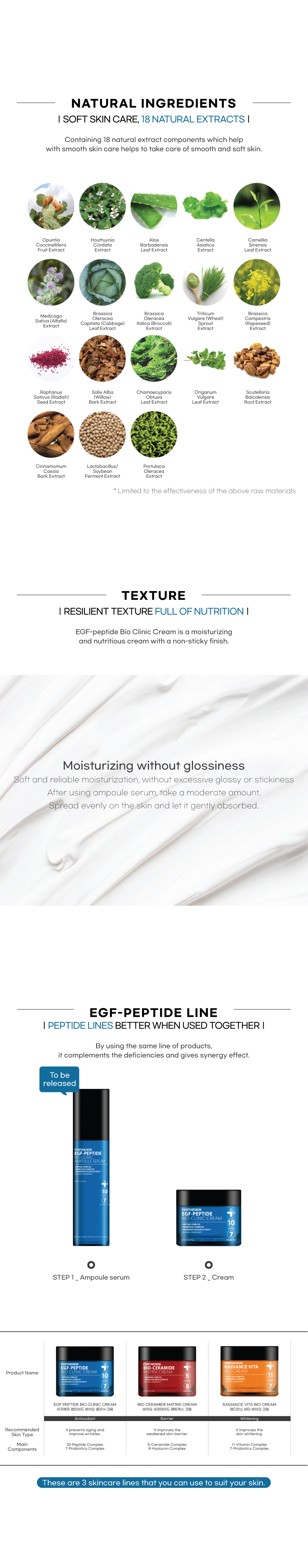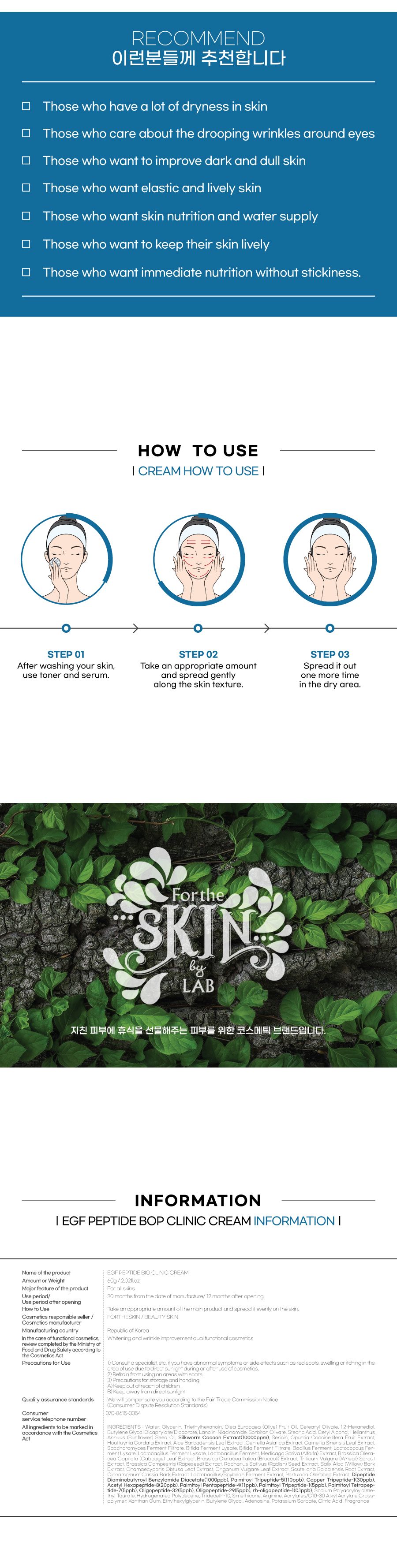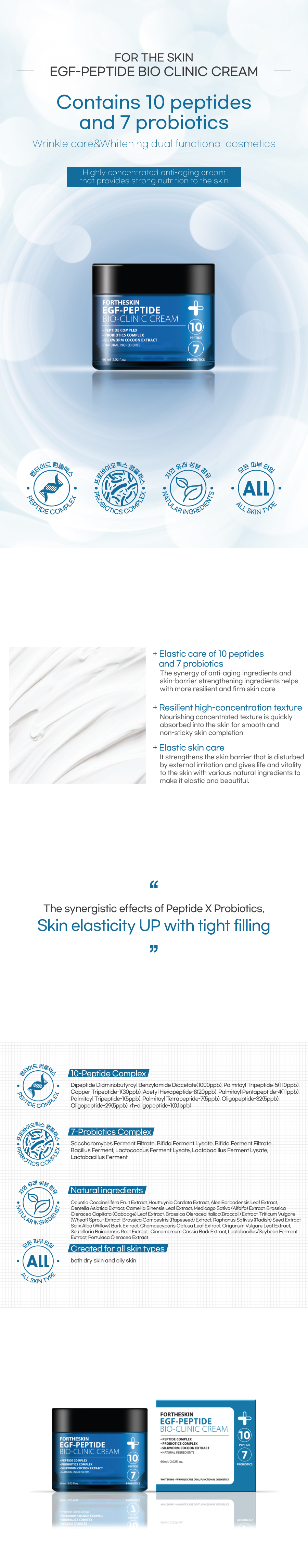 10-Peptide complexes and 7-Probiotics components help to improve whitening and wrink les by enhancing skin elasticity and volume. In addition, 18 effective components found in nature give vitality to the skin, making your skin healthy and beautiful.