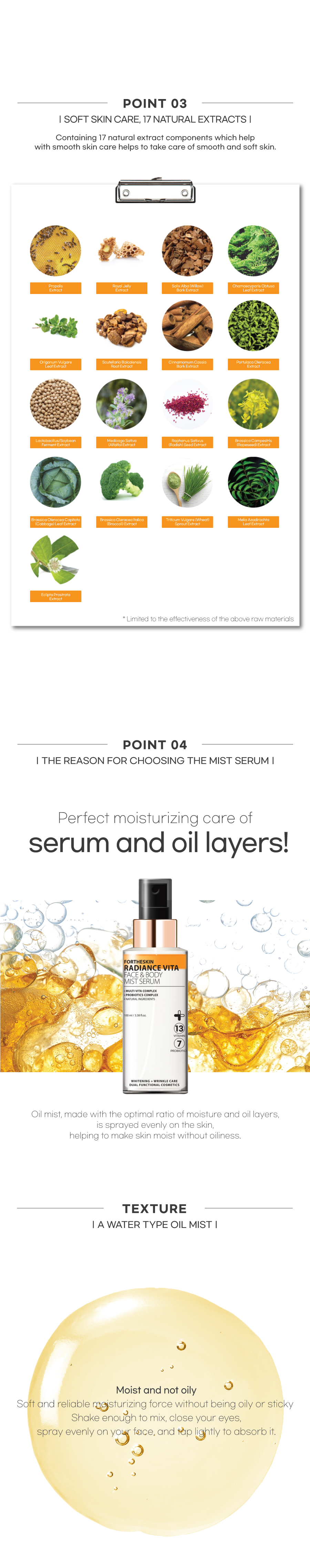 13-Vitamin complexes and 7-Probiotics components make your skin bright and lively, and 17 effective components found in nature control the oil and water balance inside skin, and nourish and moisturize your skin, making your skin healthy and beautiful.