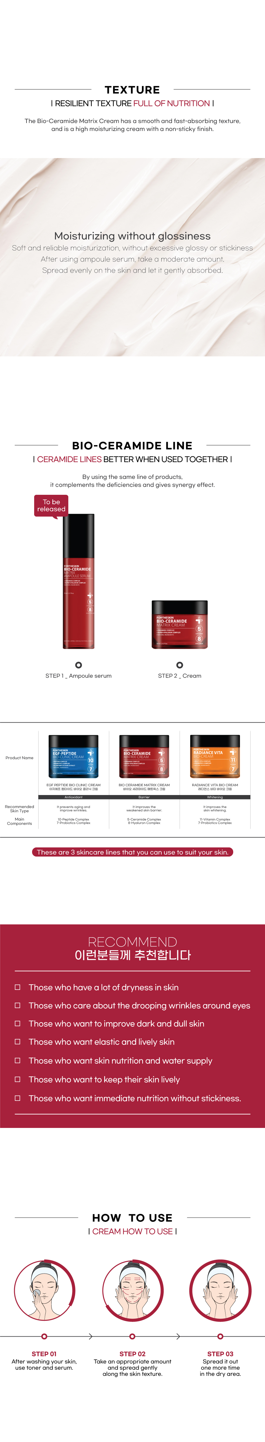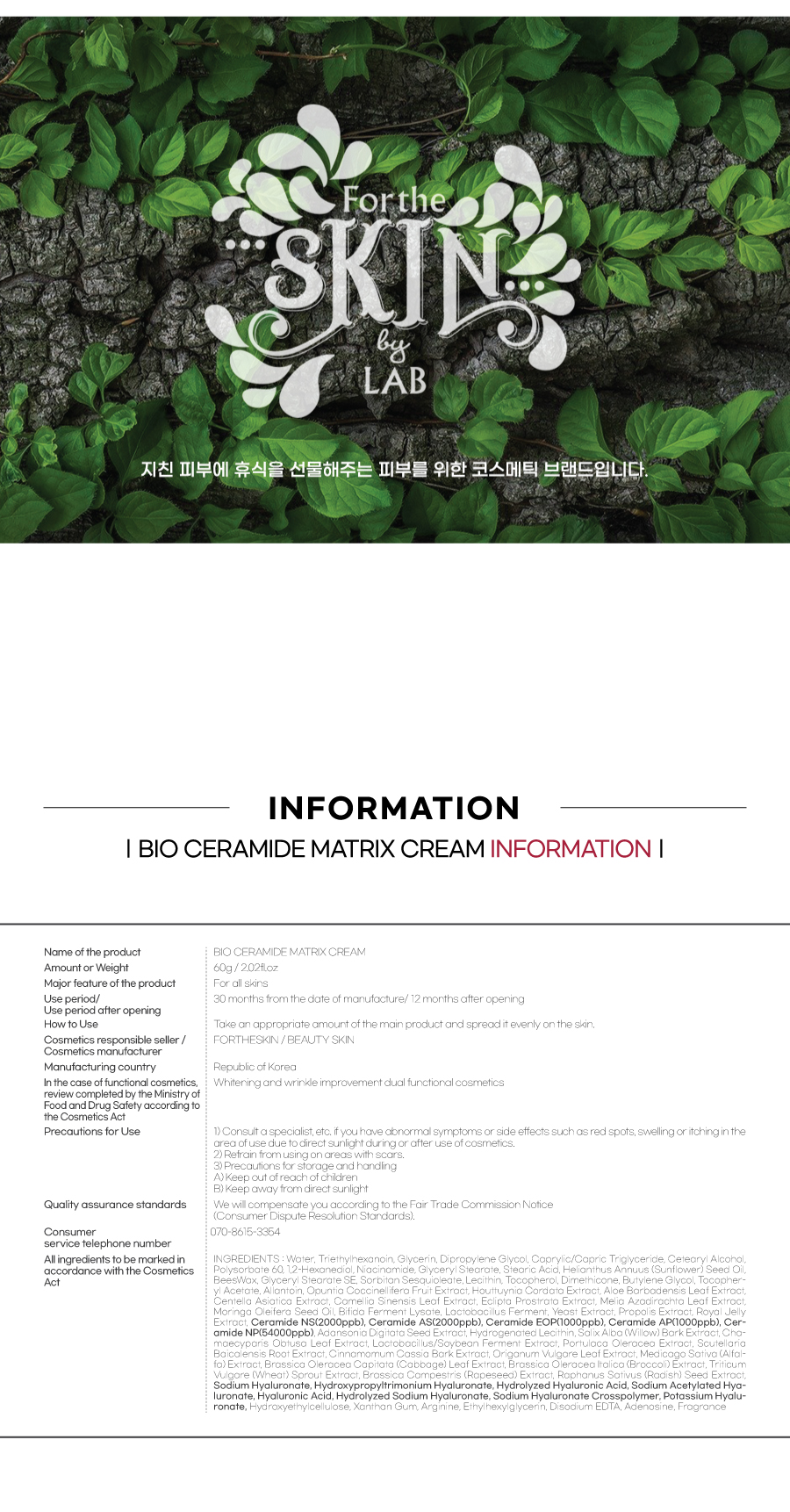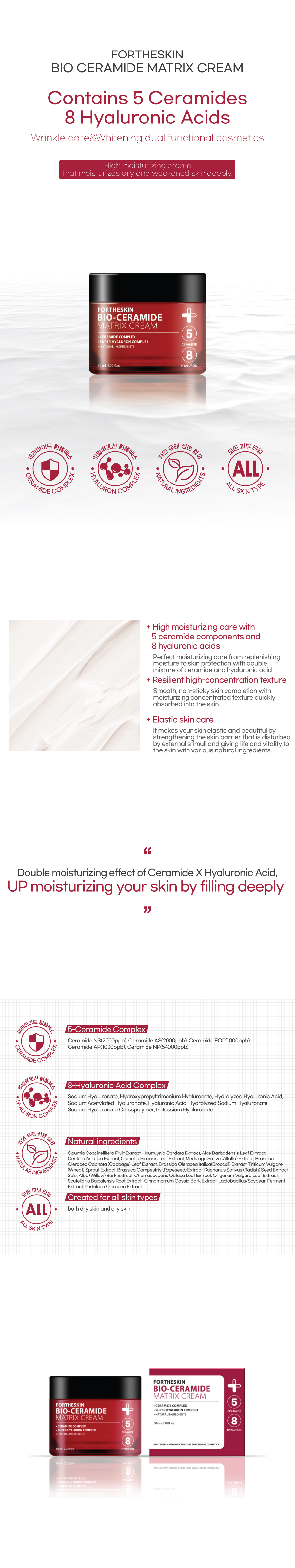 5-Ceramide complexes and 8-Hyaluronic acid components strengthen skin barriers that are disturbed from external stimulus, and 26 effective components found in nature give vitality to the skin, and fill nutrients and moisture, making your skin healthy and beautiful.