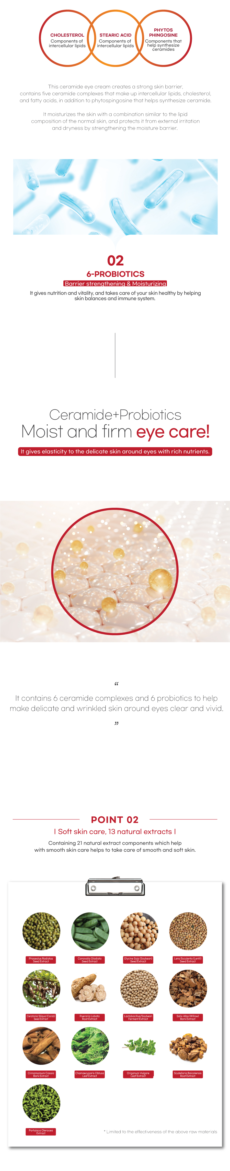 Ceramide complexes and Probiotics components strengthen skin barriers that are disturbed from external stimulus, and effective components found in nature give vitality to the skin, and fill nutrients and moisture, making your skin healthy and beautiful.